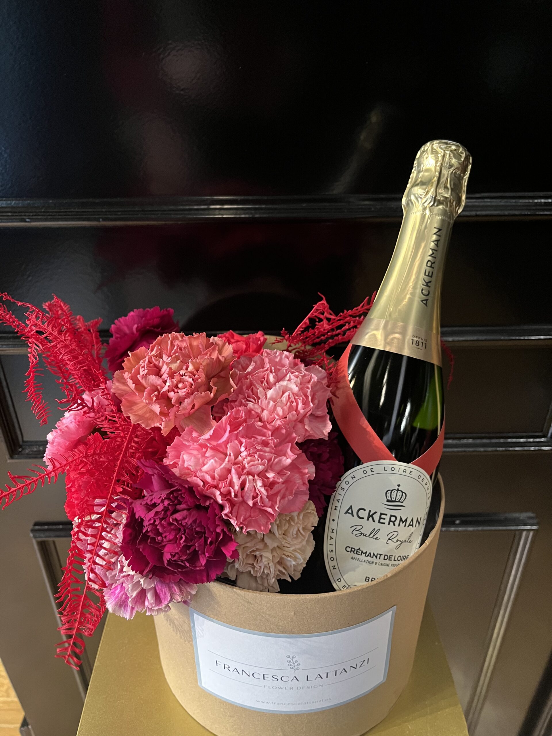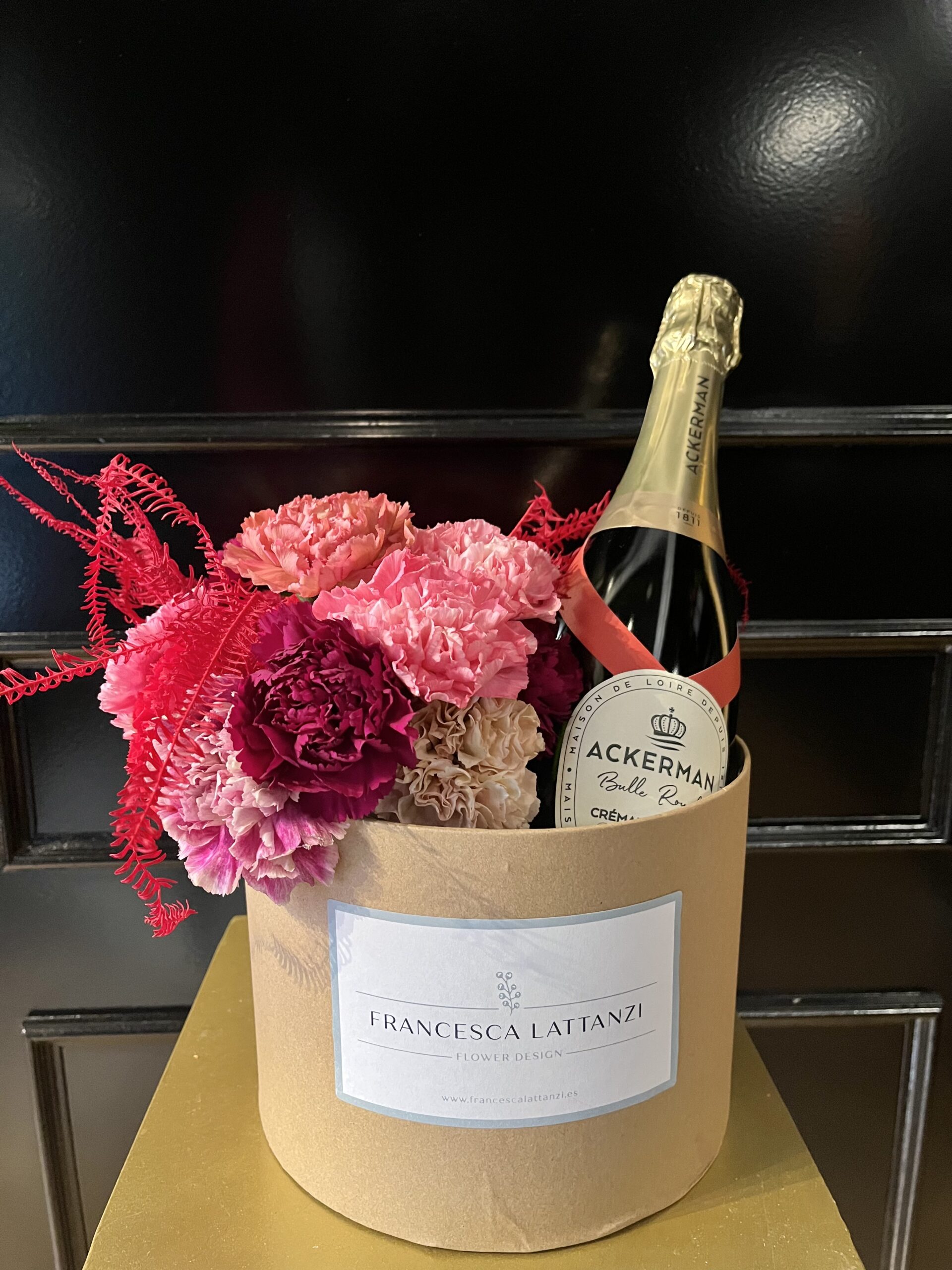 Esta elegante y sofisticada sombrerera con flores naturales y champagne es el regalo ideal para San Valentín. Diseñada para impactar desde el primer momento, combina la belleza de flores frescas cuidadosamente seleccionadas con una botella de Crémant Ackerman que invita a celebrar los momentos especiales.